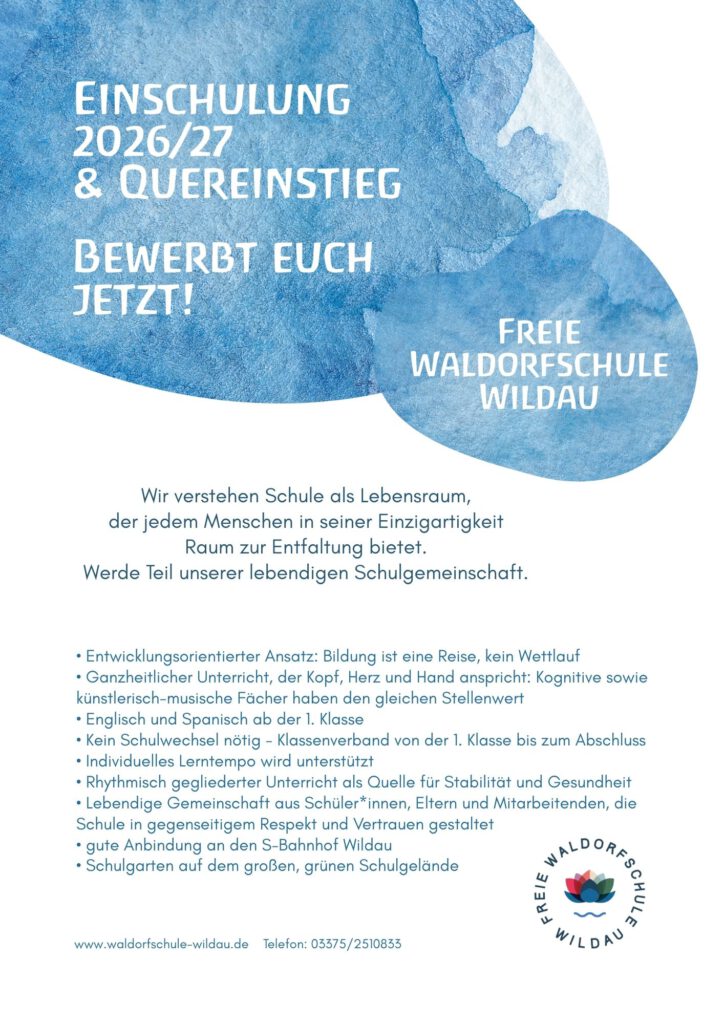 Sie sind umgezogen oder möchten, dass Ihr Kind die Schule wechselt? Ihr Kind kann auch während des Schuljahres als Quereinsteiger*in an der Waldorfschule Wildau aufgenommen werden. Auch für den Quereinstieg gibt es ein Aufnahmeverfahren, das entsprechende Formular finden Sie hier.