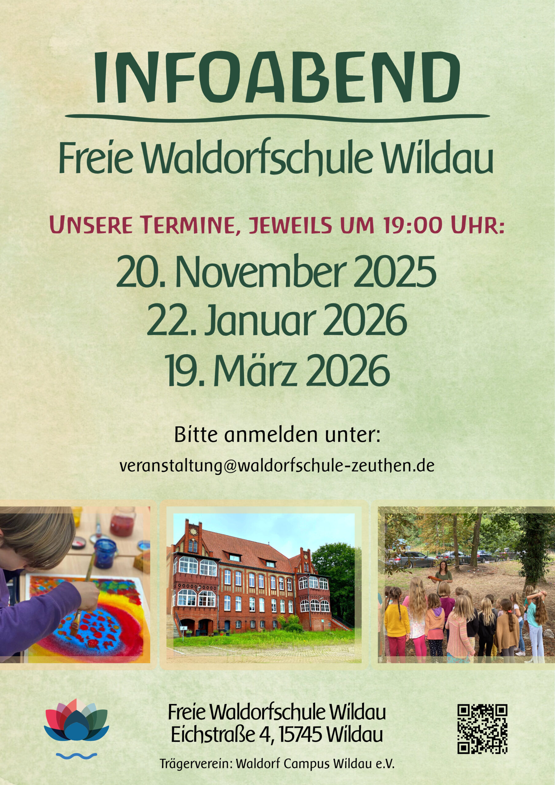 Am 20.11. sind alle Eltern und Interessierte an der Waldorfpädagogik eingeladen, sich über unsere Schule zu informieren und Fragen zu stellen. Wir freuen uns über Ihren Besuch!